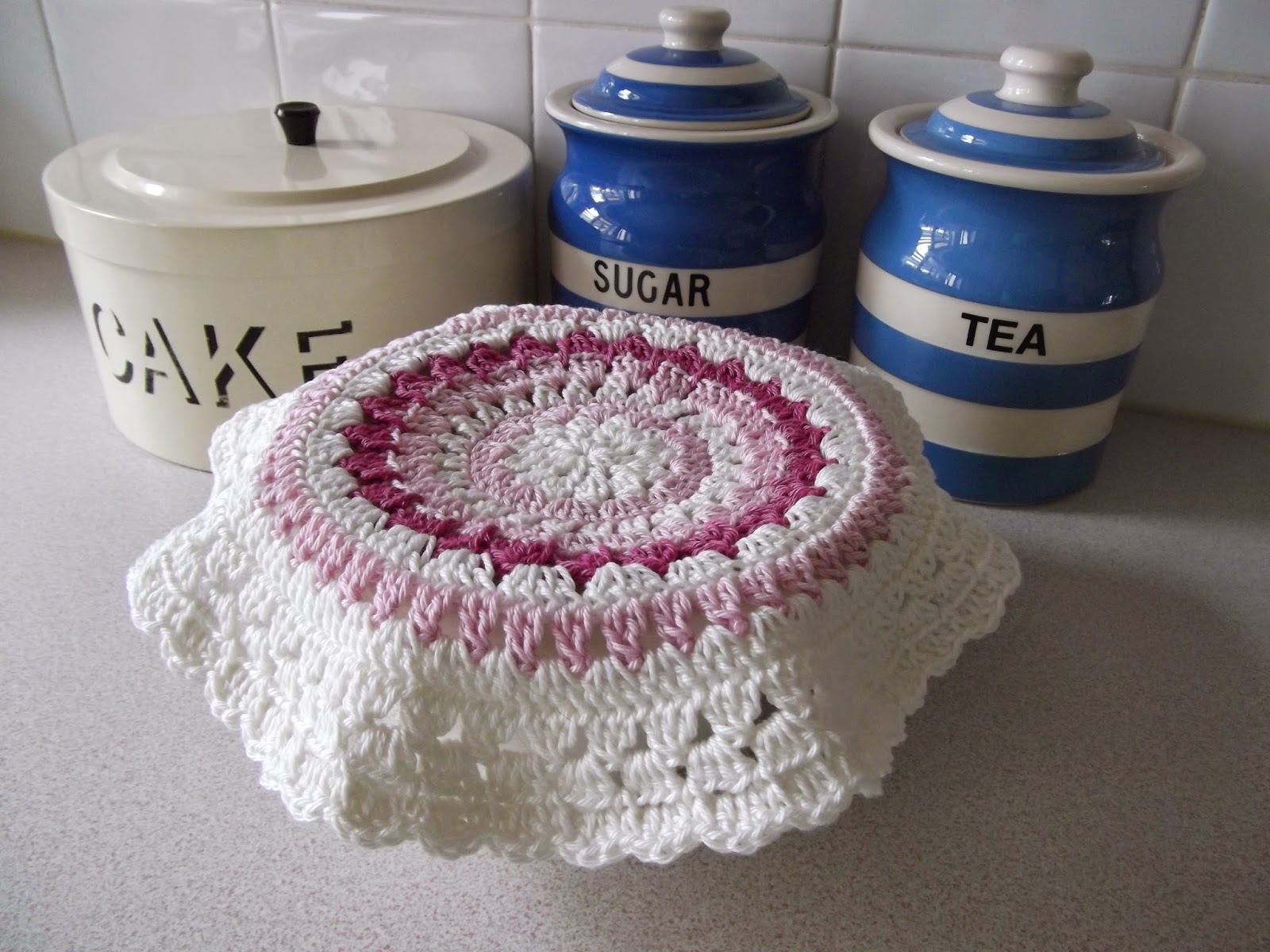 Brilliant idea of what to do with your mandala, it looks lovely like the old fashioned lace bowl covers, but more contemporary!! Clever you! xx